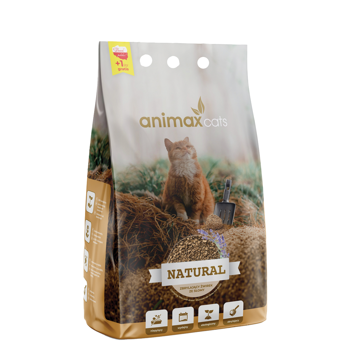 Animax Cats Natural Kruszon – Żwirek ze słomy zbrylający lawenda – Mega pochłaniacz zapachów