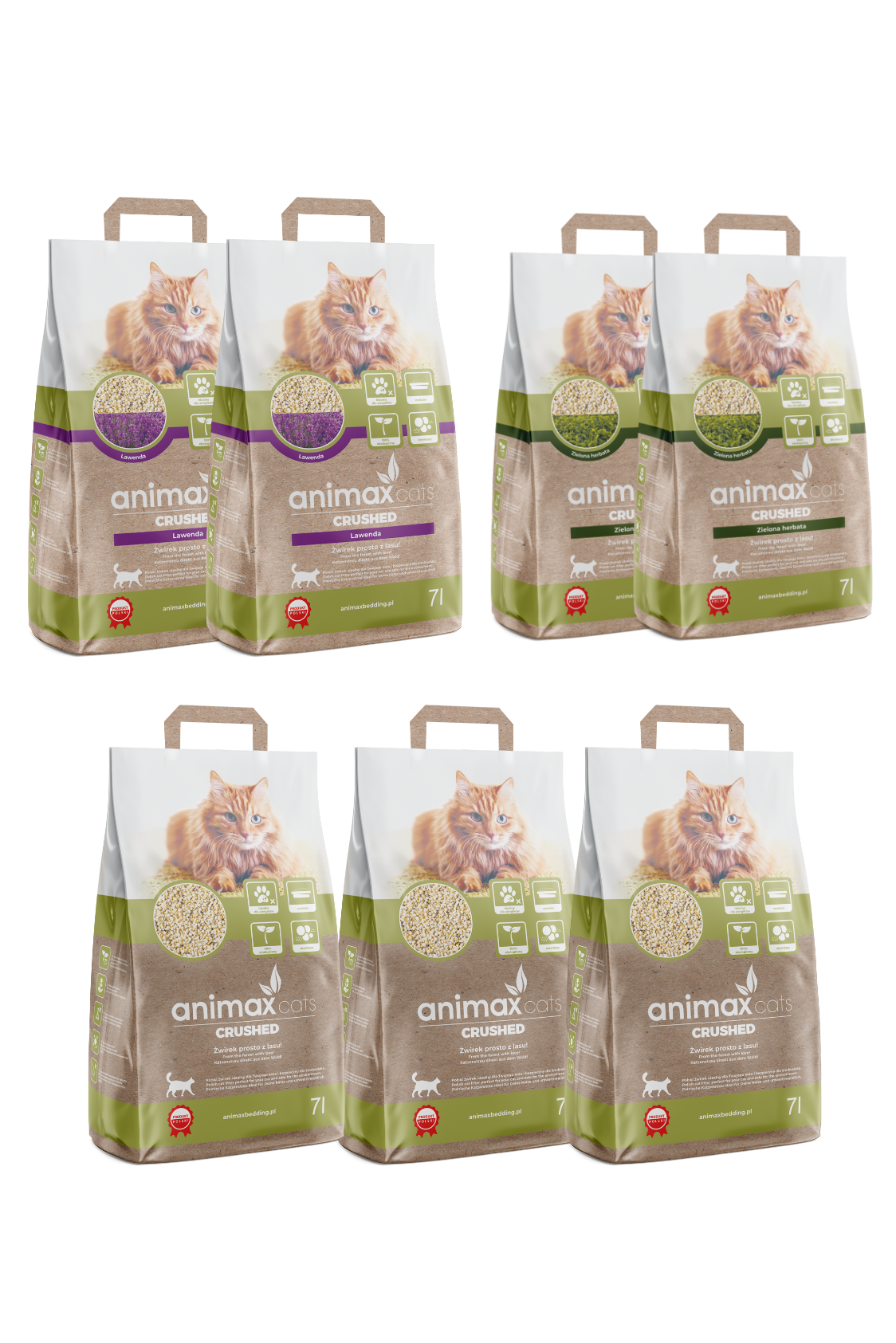 49 litrów Animax Cats Kruszon zbrylający MIX7 – zapas na 6 miesięcy – 7 opakowań, 25kg